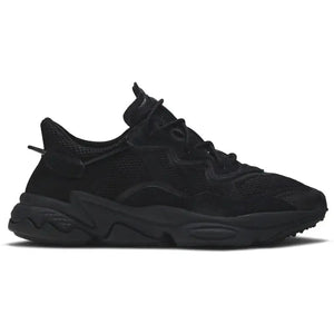 Borrowing its form and tech from the '98 original, the adidas Ozweego is a fusion of sport and forward-thinking design. This blacked-out edition—issued in August 2019—presents a mesh upper with TPU skin, suede and neoprene. While Three-Stripes reinforce the sides, a distinctive collar tube encourages an even distribution of pressure. The sneaker utilizes Adiprene cushioning within an EVA midsole and a durable rubber outsole.
