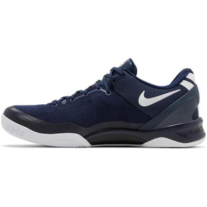 The Nike Kobe 8 Protro 'College Navy' is crafted from navy engineered mesh with contrasting white accents. They include an embroidered Swoosh and Kobe Bryant's sheath logo on the tongue and back heel. In terms of performance, a drop-in React foam midsole offers lightweight cushioning with every step. An exposed carbon fiber shank plate provides midfoot stability, while a herringbone-pattern rubber outsole yields stop-and-go traction.