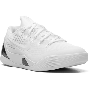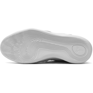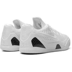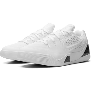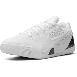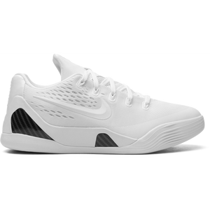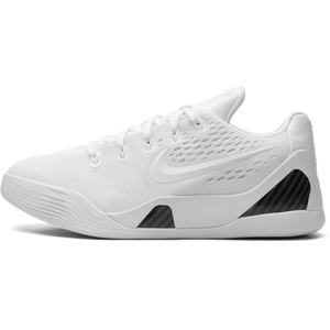 The Halo Kobe 9 Elite Protro (GS) by Nike features a high-top design created with Flyknit technology for lightweight support. Its white upper is accented by subtle silver and off-white detailing and reinforced with carbon fiber panels for enhanced stability. A cushioned Lunarlon midsole delivers responsive comfort, while the outsole features a multidirectional traction pattern. The Nike Swoosh is featured on both sides of the shoe. This design celebrates Kobe’s signature line, emphasizing precision and agility, two hallmarks of his on-court dominance.