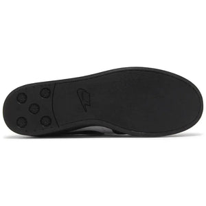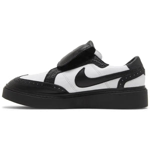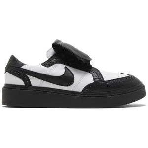 The G-Dragon x Nike Kwondo 1 ‘Yin-Yang’ reflects the K-pop artist’s personal style, blending street-ready sensibilities with a traditional dress shoe aesthetic. The black and white leather upper features a wingtip-inspired design, highlighted by brogue detailing on the forefoot and heel overlay. Removable lace shrouds display mismatched Nike and PEACEMINUSONE branding, while G-Dragon’s daisy graphic is embroidered on the heel tab. The two-tone design is finished with a rubber midsole in a solid black finish.