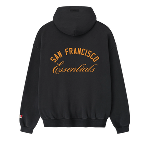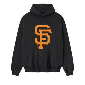 The Giants Sport Hoodie is crafted from pigment-dyed, heavyweight 520gsm cotton fleece, delivering a faded vintage feel and a sense of sports nostalgia. Designed in a relaxed Sport fit, the front features the iconic San Francisco Giants logo in a HD print, while the back showcases an San Francisco Essentials script lockup. Additional details include a MLB logo on the sleeve, side pockets, and rib-knit cuffs and waist hem. The look is finished with the signature rubberized Fear of God Essentials label at the hood.