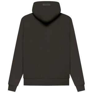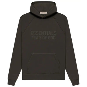 The Fear of God Essentials Hoodie Off Black is a drop-shoulder garment made of 80% cotton and 20% polyester mix. This solid color clothing apparel features an oversized fit, a kangaroo front pouch, an attached hood, long sleeves, ribbed cuffs, and a ribbed hem. On its chest, it features an imprinted Fear of God Essentials graphic inscription, while on its hood, it boasts a rubberized branding. For care, this off-black-colored hoodie should be hand-washed and then flat or line dried.