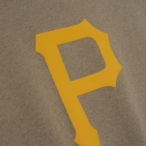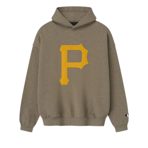 The Pirates Sport Hoodie is crafted from pigment-dyed, heavyweight 520gsm fleece, offering rich color depth and soft comfort. Designed in a relaxed Sport fit, the front features the iconic Pittsburgh Pirates logo in a HD print, while the back showcases an Pittsburgh Essentials script lockup. Additional details include a MLB logo on the sleeve, side pockets, and rib-knit cuffs and waist hem. The look is finished with the signature rubberized Fear of God Essentials label at the hood.