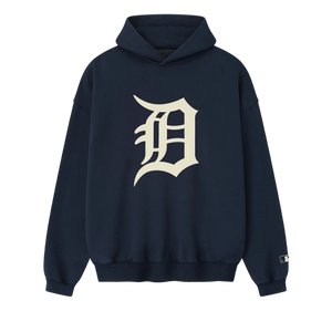 The Tigers Sport Hoodie is crafted from pigment-dyed, heavyweight 520gsm cotton fleece, delivering a faded vintage feel and a sense of sports nostalgia. Designed in a relaxed Sport fit, the front features the iconic Detroit Tigers logo in a HD print, while the back showcases an Detroit Essentials script lockup. Additional details include a MLB logo on the sleeve, side pockets, and rib-knit cuffs and waist hem. The look is finished with the signature rubberized Fear of God Essentials label at the hood.