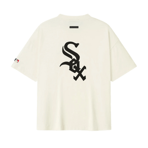 The White Sox 90s Tee is made from pigment-dyed 100% cotton jersey for a vintage feel and features an oversized ’90s fit with dropped shoulders. The front showcases an HD-printed Chicago graphic paired with the Essentials script logo, complemented by the MLB emblem on the sleeve and the iconic Chicago White Sox logo on the back. The look is finished with a Fear of God Essentials label at the back collar.
