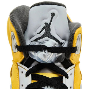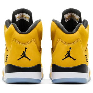 The 2025 edition of the Air Jordan 5 Retro T23 'Tokyo' revives a 2011 limited release that dropped exclusively in Japan. Like the original, this reissue sports a bright yellow nubuck upper with translucent quarter panel netting and grey molded eyelets. A Jumpman logo adorns the silver reflective tongue in black embroidery, matching the textile collar lining, stylized '23' on the lateral heel, and the second Jumpman icon that adorns the back heel.
