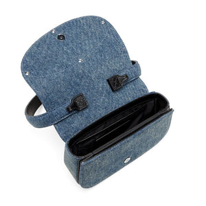 The 1DR bag has become Diesel most coveted accessory. It's crafted from blue denim with a sun-faded effect obtained through a special solarisation treatment, enriched with tonal leather details. The flap is embellished with a matte-finish Oval D plaque, adding an understated yet refined touch. The accessory has a handle that fits over the shoulder and an optional belt-like strap for cross-body wear.