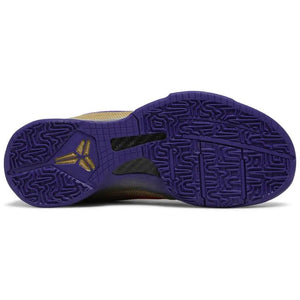 The Undefeated x Nike Zoom Kobe 5 Protro ‘Hall of Fame’ celebrates Kobe Bryant’s induction into the Naismith Memorial Basketball Hall of Fame. As a nod to the Mamba’s championship pedigree, a metallic gold finish coats the upper, crafted from breathable mesh with snakeskin-textured leather overlays. Each shoe is accented with a purple Swoosh on the right side panel and a mismatched pink Swoosh on the left. Specific to the left shoe, the pink Swoosh is inscribed with the numbers 24, 10 and 8, representing the jersey numbers that Kobe wore with the Lakers and Team USA. Additional mismatched branding lands on the tongue and heel, both featuring Kobe’s personal trademark and Undefeated’s Five Strikes logo.