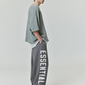 The Lounge Sweatpant is crafted from 380gsm core fleece, offering both body and structure. The lounge fit is designed with oversized proportions for voluminous drape throughout. A bold "ESSENTIALS" logo is screen-printed down the leg. Additional details include an encased elastic waistband and bottom hem, elongated drawstrings, and side seam pockets. The front center showcases a rubberized label bearing the Fear of God Essentials logo.