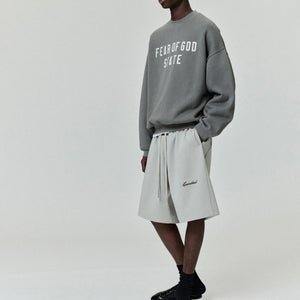 The Relaxed Sweatshort is made from 380gsm core fleece. It features a baggy, elongated fit that captures the essence of 90s basketball style, complete with a sportswear piping detail. The embroidered "Essentials" script logo is placed on the leg, while a Fear of God Essentials rubberized label is situated at the center front. Key features include side pockets and an encased elastic waistband with drawstrings for added comfort.