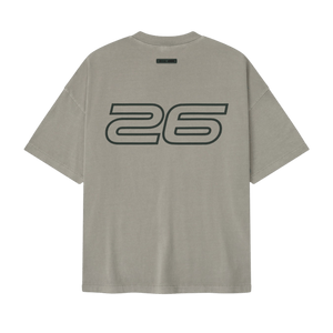 The 90s Tee is cut from 100% cotton jersey, offering a soft yet substantial hand feel. Designed in an oversized 90s-inspired silhouette, it features exaggerated proportions with dropped shoulders for a relaxed drape. The front is defined by a matte HD print application of the Fear of God Essentials lockup, and the back receives a "26" graphic. The signature rubberized Fear of God Essentials label at the collar.