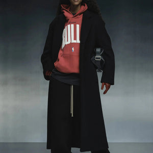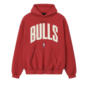 The Bulls 90s Hoodie is crafted from pigment-dyed, heavyweight 520gsm cotton fleece, delivering a softly faded vintage feel in a relaxed, ’90s-inspired fit. The front features a bold puff-print “ESSENTIALS BULLS” graphic alongside the official NBA logo. Additional details include a kangaroo pocket, rib-knit cuffs and hem, and a signature rubberized Fear of God Essentials label accenting the hood.