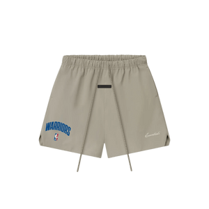 The Warriors Classic Short is made from a stretch-woven fabric and finished with a full mesh liner, delivering breathable comfort within a timeless athletic-fit silhouette. A WARRIORS NBA logo lockup are branded on leg and script Essentials print complements the other. Additional details include an encased elastic waistband with elongated drawstrings, side pockets. A Fear of God Essentials rubberized label is stitched on the center front.