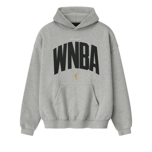 The WNBA 90s Hoodie is crafted from a heavy 480GSM fleece and designed in a relaxed, 90s-inspired fit. The front showcases a bold puff-print “ESSENTIALS WNBA” graphic, complemented by an official WNBA logo. Additional features include a kangaroo pocket, rib-knit cuffs and hem, and a signature rubberized Fear of God Essentials label accenting the hood.