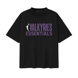 The Valkyries 90s Tee is cut from 100% cotton jersey, offering a soft yet substantial hand feel. Designed in an oversized 90s-inspired silhouette, it features exaggerated proportions with dropped shoulders for a relaxed drape. The front is defined by a bold puffer-print application of the "Valkyries Essentials" lockup, alongside the authentic NBA insignia. The signature rubberized Fear of God Essentials label at the collar.