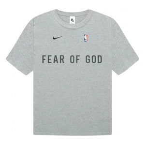 This dark heather grey Fear Of God x Nike t-shirt dropped on November 19th, 2020, just ahead of the holiday season. The t-shirt gives off a 90's NBA vibe, delivering a throwback look featuring Fear Of God, Nike, and the NBA's logo. This Fear Of God t-shirt is made of a heavyweight 100% cotton material and features a branding patch on the back as well.