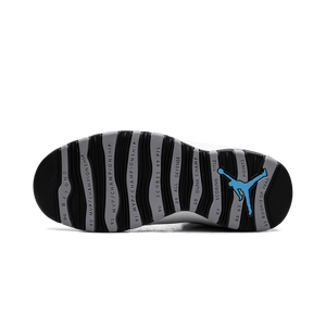 The 2025 edition of the Air Jordan 10 Retro 'Steel' brings back an original colorway of the model designed by Tinker Hatfield to celebrate Michael Jordan's retirement. Laces feed through Steel Grey webbing eyelets to secure the layered white leather upper, contrasted by black leather accents on the collar and eyestay. Embroidered Jumpman branding decorates the back heel. Performance benefits include a Phylon midsole with a top-loaded, full-length Air-sole unit. Underfoot, the rubber outsole displays a teal Jumpman, alongside a list of MJ's ten career milestones.