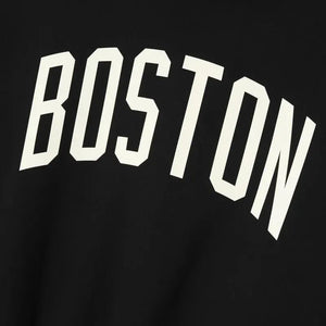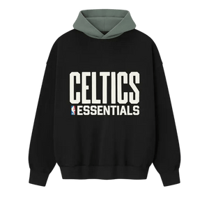 The Celtics Sport Hoodie is crafted from core fleece, offering an elevated balance of softness, structure, and lasting comfort. Cut in a relaxed sport fit, it drapes with more ease through the body and extended length compared to the Essentials classic silhouette. The front features a bold puffer-print graphic "Celtics Essentials " alongside the authentic NBA logo, while the back showcases the "Boston" logo. Additional features include contrasting hood, side pockets, rib-knit at the cuffs and waist hem. The signature rubberized Fear of God Essentials label accents the hood.