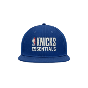 The Fear of God Essentials New York Knicks 9Fifty RC Snapback Cap features a "Knicks Essentials" lockup alongside the official NBA logo. The 9Fifty RC or "Retro Crown" is designed for a more vintage, casual feel. Additional features include an embroidered New Era logo on the side and an adjustable snapback closure at the rear.