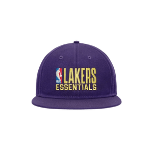 The Fear of God Essentials Los Angeles Lakers 9Fifty RC Snapback Cap features a "Lakers Essentials" lockup alongside the official NBA logo. The 9Fifty RC or "Retro Crown" is designed for a more vintage, casual feel. Additional features include an embroidered New Era logo on the side and an adjustable snapback closure at the rear.
