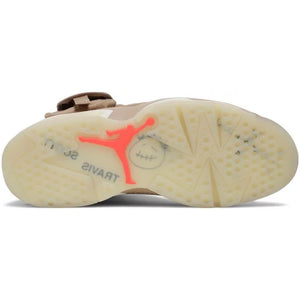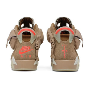 Following on the heels of the coveted ‘Olive’ colorway from 2019, the Travis Scott x Air Jordan 6 Retro ‘British Khaki’ reunites Jordan Brand with the Houston rapper. The upper is crafted with suede and canvas, accented with Bright Crimson details. The stash pouch makes a repeat appearance on the lateral collar, while new zippered detailing is added to the medial side. Mismatched Nike Air and Cactus Jack branding adorns the heel of the left and right shoe, with additional graphics on the midsole, outsole, tongue and lace lock.