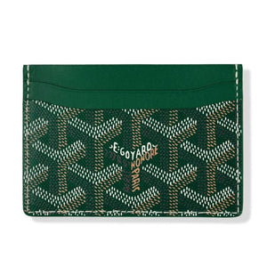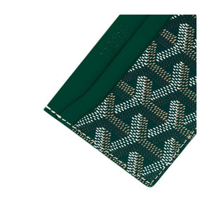 The Goyard Saint Sulpice Card Case Chevron Green is available in a couple of materials, including calfskin and canvas.