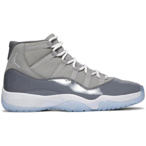 The 2021 edition of the Air Jordan 11 Retro ‘Cool Grey’ brings back a colorway first released in 2001 and retroed again in 2010. Celebrating the 20th anniversary of the original launch, the mid-top build is faithful to the original, featuring a nubuck upper with tonal webbing lace loops and a shiny patent leather overlay, all rendered in tones of Medium and Cool Grey. A white Jumpman logo is embroidered on the lateral ankle, while a stylized ‘23’ decorates the heel notch. Lightweight cushioning is provided by a full-length Air-sole unit housed within a white Phylon midsole. Underfoot, a translucent outsole reveals a carbon fiber spring plate for enhanced on-court responsiveness.