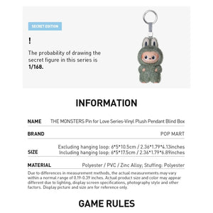 Pop Mart Labubu The Monsters Pin for Love Series Vinyl Plush Pendant (N-Z) Single Blind Box