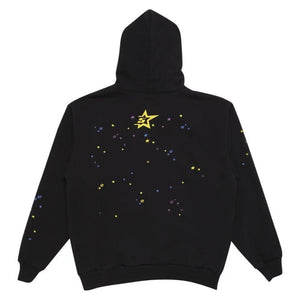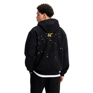 This hoodie provides comfort and durability with its high-quality materials and careful craftsmanship. It features a black colorway, over which a faded spiderweb and bright pops of colors create an eye-catching aesthetic. The classic pullover design employs a relaxed fit, with ribbed cuffs and a ribbed hem adding structure to the silhouette while ensuring it remains durable wash after wash. A kangaroo pockets adds further functionality to the garment, allowing wearers to keep essentials close at hand.