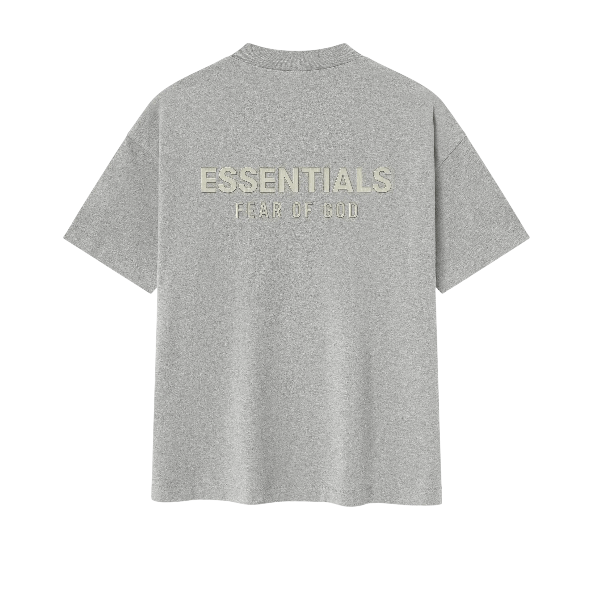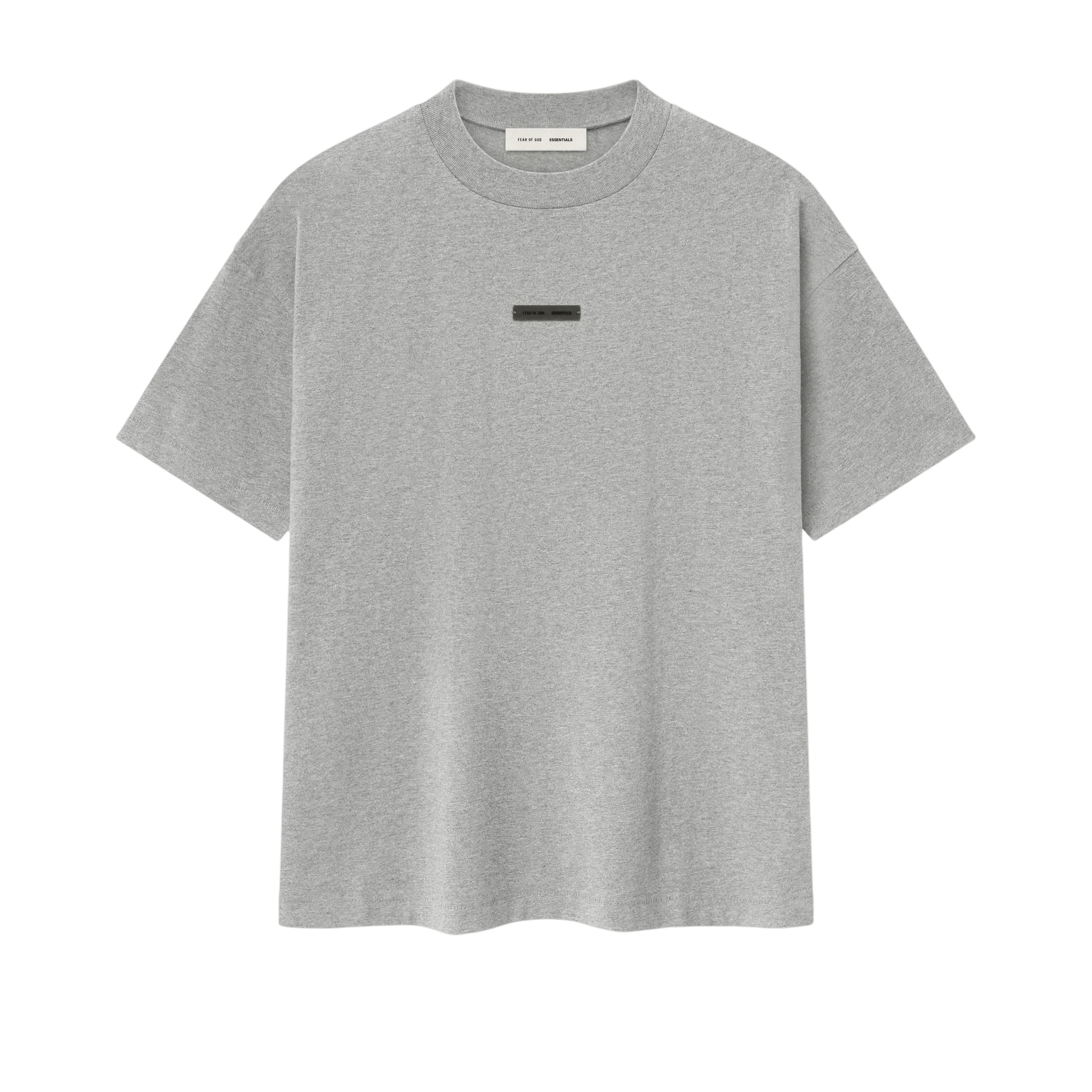 The Classic Tee is made from medium-weight 100% cotton jersey. The rib-knit crewneck tee features a classic fit with signature Fear of God relaxed proportions for everyday wear. Branding includes a Fear of God Essentials rubberized label at the center front and a new "Essentials Fear of God" beveled metallic logo across the back.