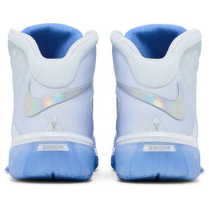 The Nike Zoom Kobe 3 Protro 'Christmas' is based on a holiday-themed colorway of the Nike Kobe 3. Like the original, the net-inspired upper employs a breathable mesh base that transitions from blue to white. Durable synthetic leather wraps the forefoot and heel, the latter accented with oversized Swoosh branding. This Protro model comes equipped with updated tooling that pairs a lightweight Cushlon midsole with a full-length Zoom Air Strobel. Underfoot, the icy blue semi-translucent rubber outsole features an updated traction pattern for optimal grip.