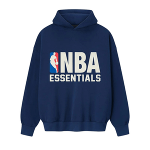 The NBA Sport Hoodie is crafted from core fleece, offering an elevated balance of softness, structure, and lasting comfort. Cut in a relaxed sport fit, it drapes with more ease through the body and extended length compared to the Essentials classic silhouette. The front features a bold puffer-print graphic "NBA ESSENTIALS" alongside the official NBA logo. Additional features include side pockets, rib-knit at the cuffs and waist hem. The signature rubberized Fear of God Essentials label accents the hood.