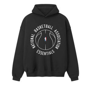 The NBA x Barkley Hendricks 90s Hoodie is crafted from 520GSM heavyweight cotton fleece and designed in a relaxed, 90s-inspired silhouette. The front features a puff-printed NATIONAL BASKETBALL ASSOCIATION ESSENTIALS graphic paired with the official NBA logo, while the back highlights a Barkley Hendricks' iconic Basketball Series artwork. Finishing details include side pockets, rib-knit cuffs and waist hem, and a Fear of God Essentials label on the hood.