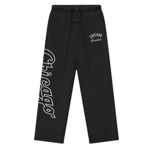 The White Sox Lounge Sweatpant is constructed from a heavy 480gsm fleece and designed with a voluminous, wide-leg fit. Branding features a bold Chicago HD-printed logo down one leg, complemented by a Chicago x Essentials script lockup on the other. Functional details include an elastic waistband with elongated drawstrings and side pockets. The look is finished with the Essentials Fear of God black bar at the center front.
