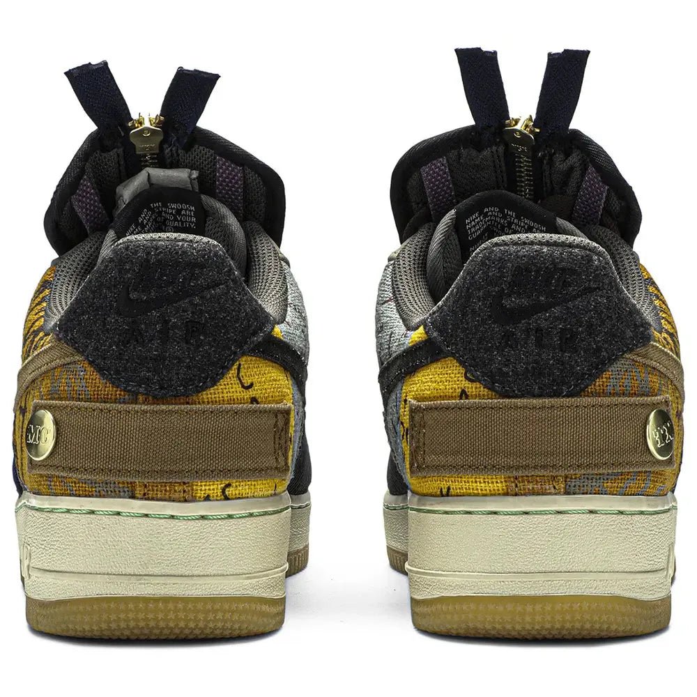 The Travis Scott x Air Force 1 Low 'Cactus Jack' is a unique creation featuring the rapper's trademark utilitarian cues. Released in November 2019, this edition has printed canvas, leather and suede uppers with zipped corduroy lace shrouds and different colored Swooshes on the sides. The sneaker rests atop a classic AF1 midsole and gum rubber outsole.