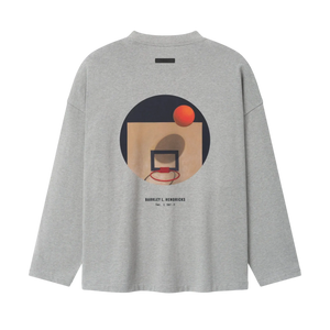 The NBA x Barkley Hendricks V-Neck Long Sleeve Tee is cut from 100% cotton heavy jersey, offering a soft yet substantial hand feel. Designed in an oversized 90s-inspired silhouette, it features exaggerated proportions with dropped shoulders for a relaxed drape. The front features a puff-printed NATIONAL BASKETBALL ASSOCIATION ESSENTIALS graphic paired with the official NBA logo, while the back showcases Barkley Hendricks’ iconic Basketball Series artwork rendered in a 3D print that captures the texture and emotion of his brushstrokes. The Fear of God Essentials label is at the collar.